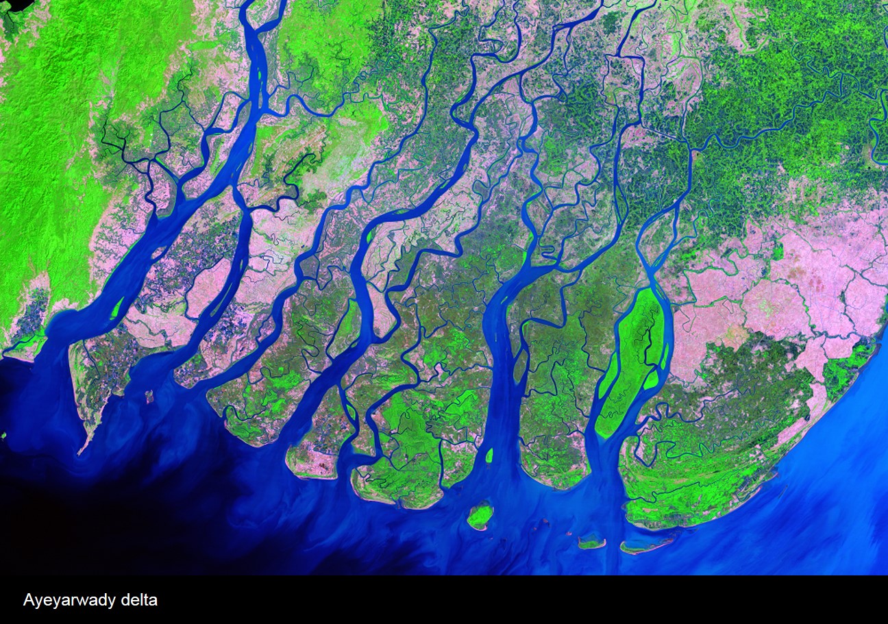 The Ayeyarwaddy River is the fifth most heavily silted river in the world. The river carries large amounts of sediment that deposits in the delta area and causes extending of the delta area towards the sea. Sedimentation due to seasonal flooding in the delta area is important for rice growing, making the area one of the world’s major rice producers. For example, the Ayeyarwady Delta supports a population of over three million people and provides nearly 60% of Burma’s total rice production.These sediments also pose challenges for development of the basin water resources.