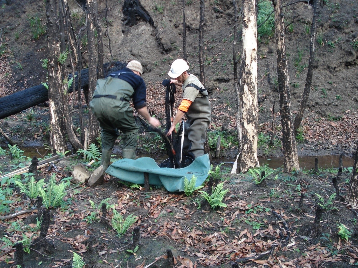 Over the next weeks and months, we began to see the landscape change and recover. Through my work at Melbourne Water, I assessed properties across the fire zone. To the south we were dealing with fire recovery in the Bunyip catchment. Dave Carew was my counterpart at Melbourne Water and is now also at Alluvium in our small ecology team.
