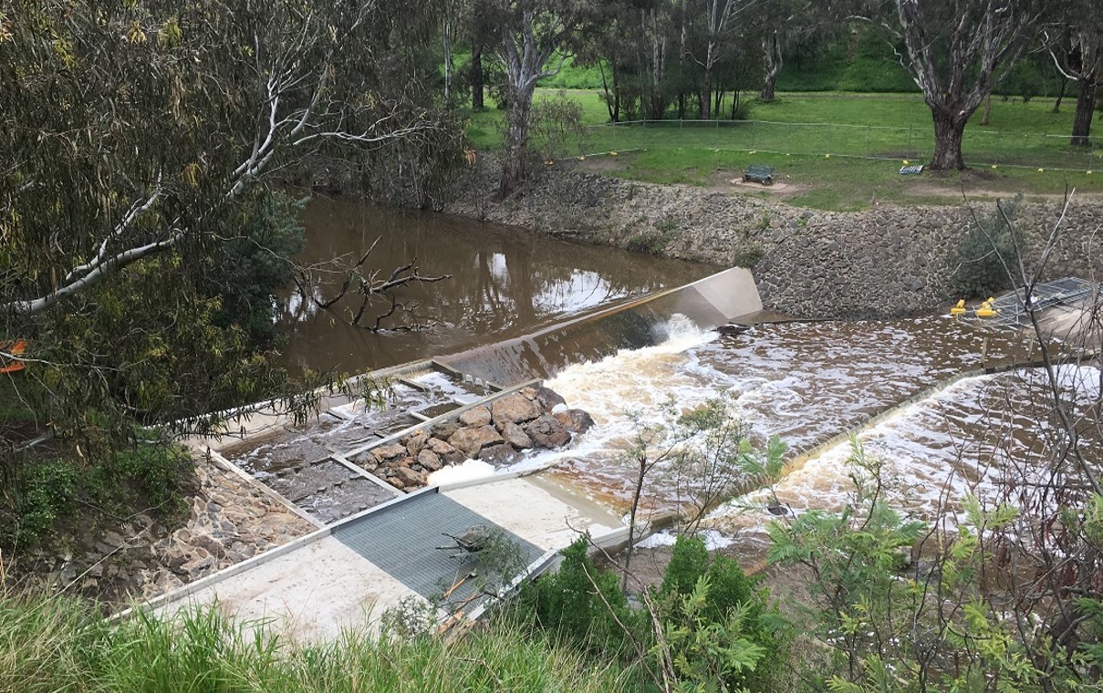 Alluvium prepared detail designs for two cone fishways on the Maribyrnong River, at Garden Avenue and at Arundel Road, both near Keilor, Victoria. The fishways operate on a similar principal to vertical slot fishways, but have higher flow capacity and a smaller footprint as they can be set at a steeper grade.